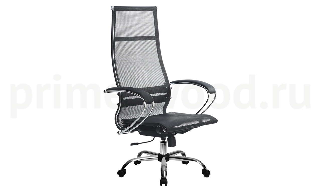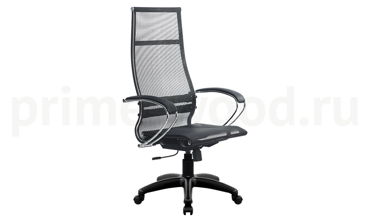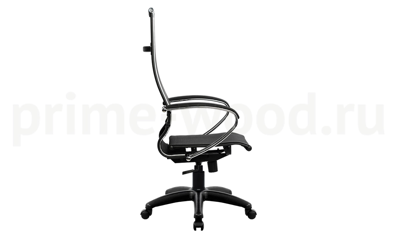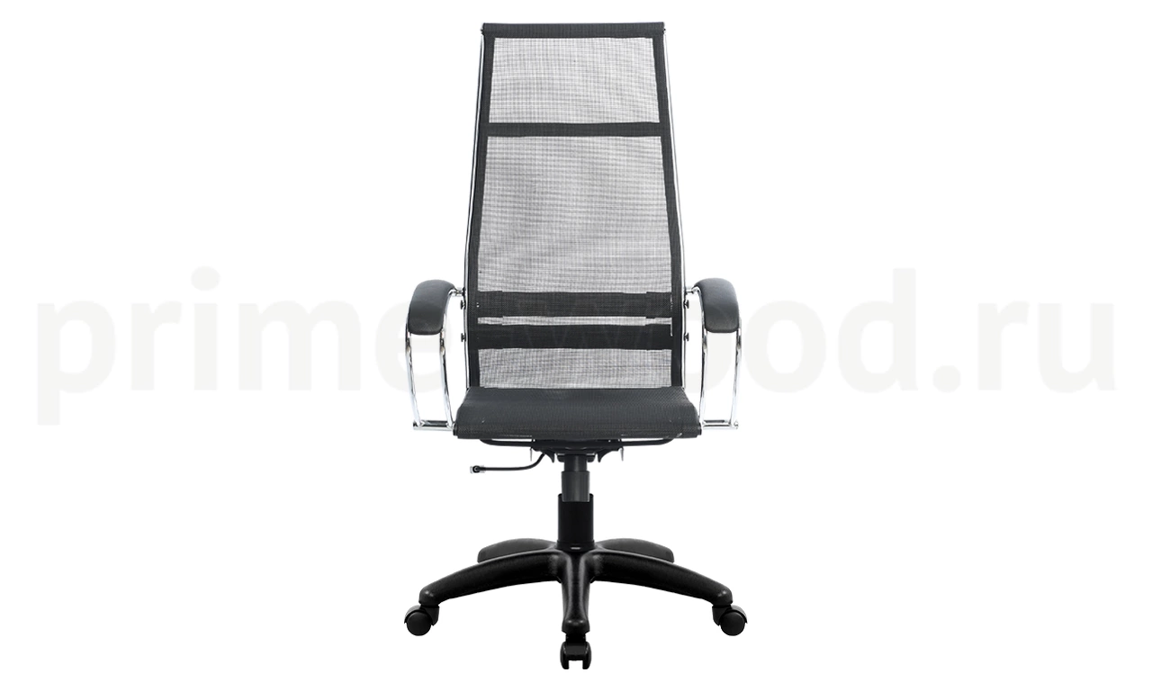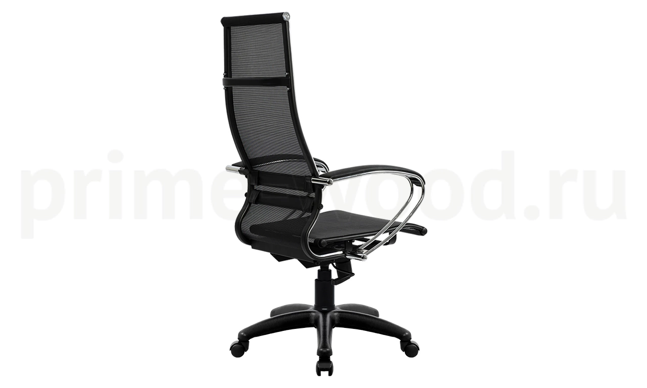 Спинка: высокая, черное полимерное покрытие каркаса с хромированным молдингом, ширина 475 мм