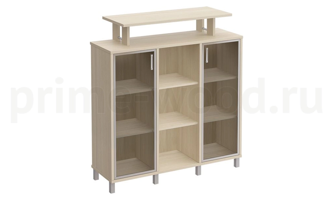 Стеллаж средний с надстройкой и стеклянными дверками